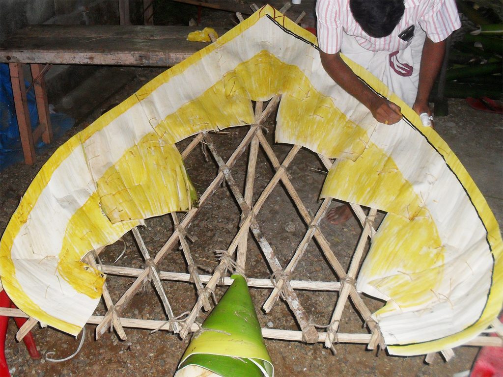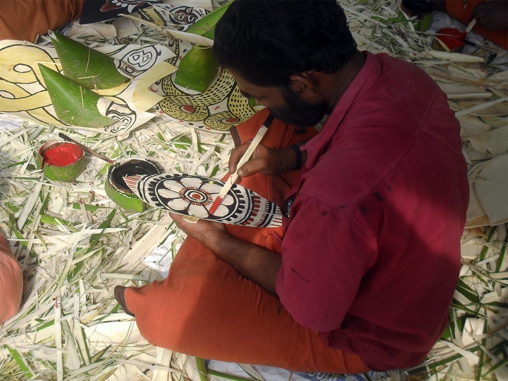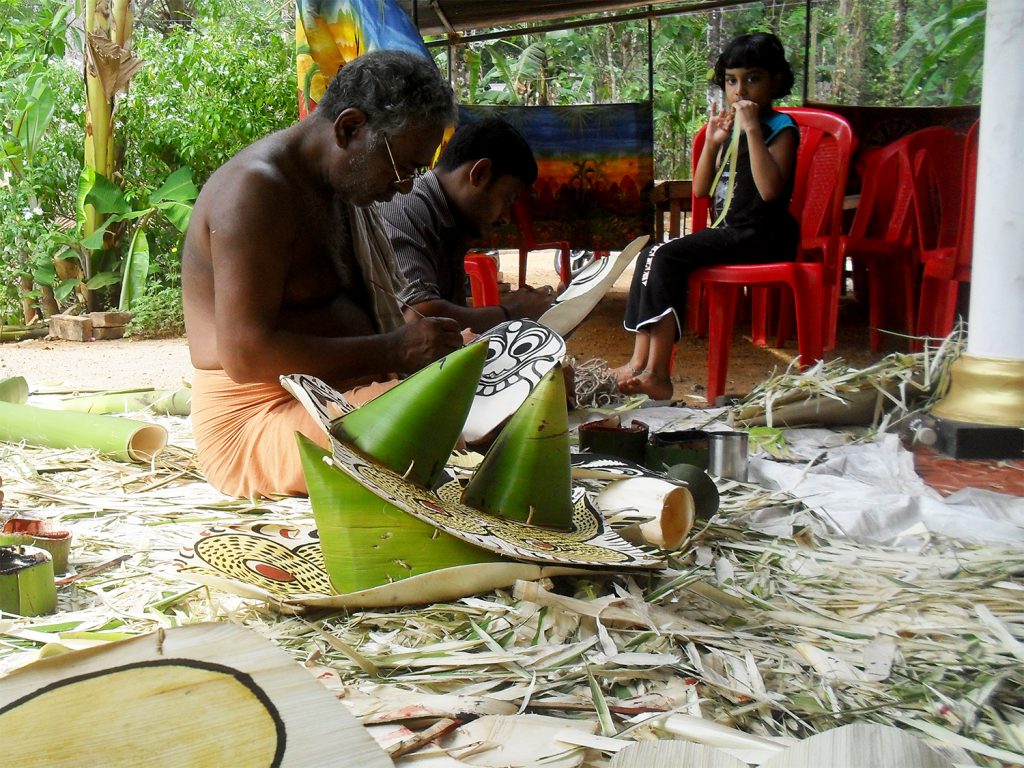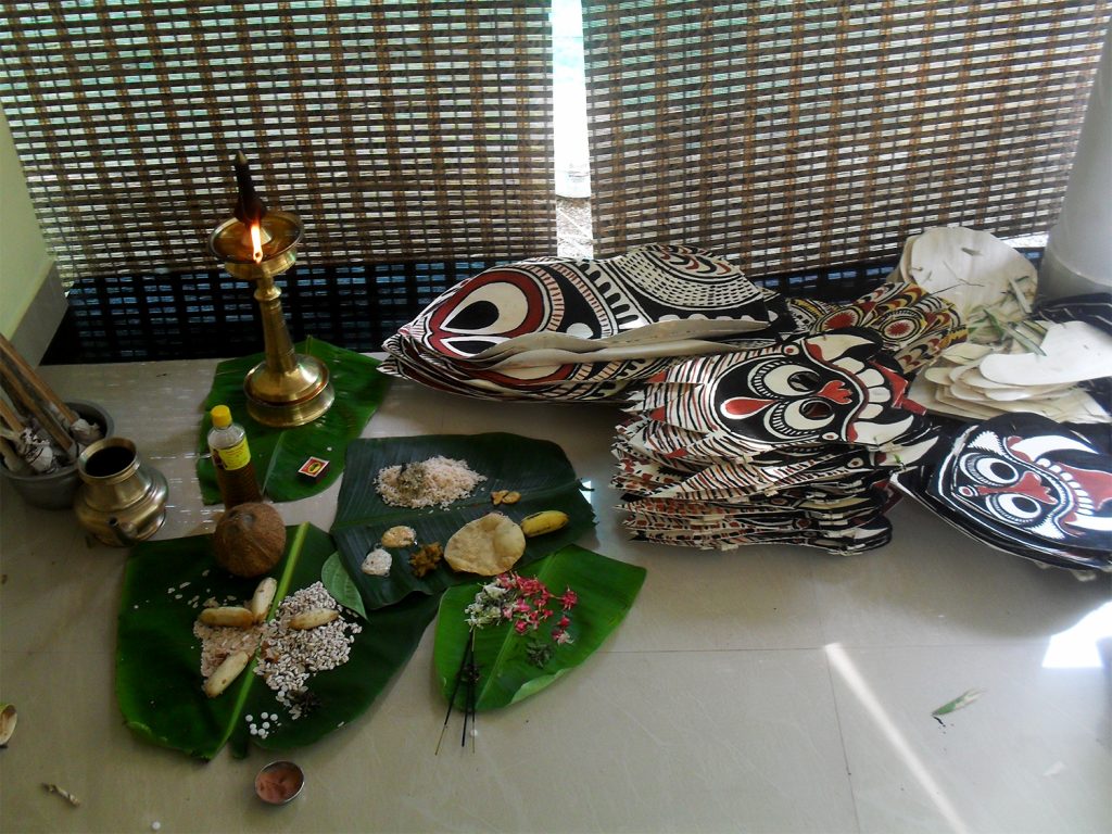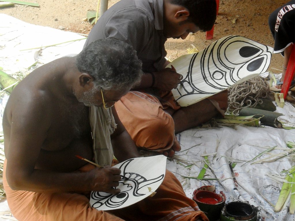 Padayani preparations involve crafting elaborate, temporary kolams—costumes and masks—using natural materials such as arecanut spathes, tender coconut leaves, and organic pigments. The artists begin their work with spiritual discipline, and in the days leading up to the main performance, ceremonial rituals like Choottuveyppu (the lighting of torches) are conducted. These preparations culminate in the vibrant final performance, featuring folk songs, rhythmic drumming, and dynamic masked dances.